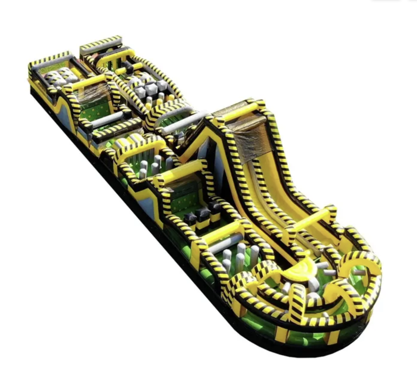 Perfect for corporate events, school functions, and festivals, the bold black-and-yellow “hazard zone” design adds high-energy excitement to any event. 5 power circuits or generator rental required.